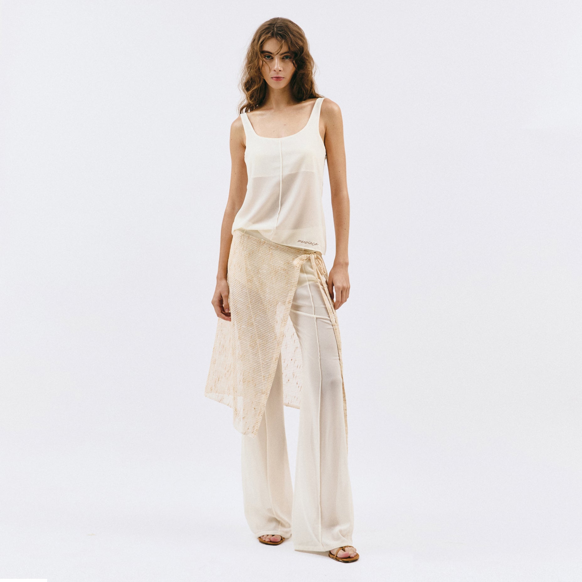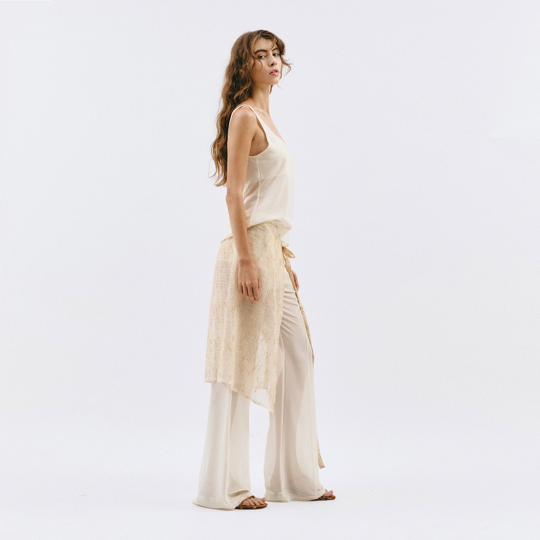 Crafted from lightweight, sheer fabric with an all-over woven polka dot pattern, it offers beautiful texture and fluid movement. Style it over the Sandria Pants for a coordinated ensemble or wear it solo as a chic beach cover-up, it brings personality and style to your look.